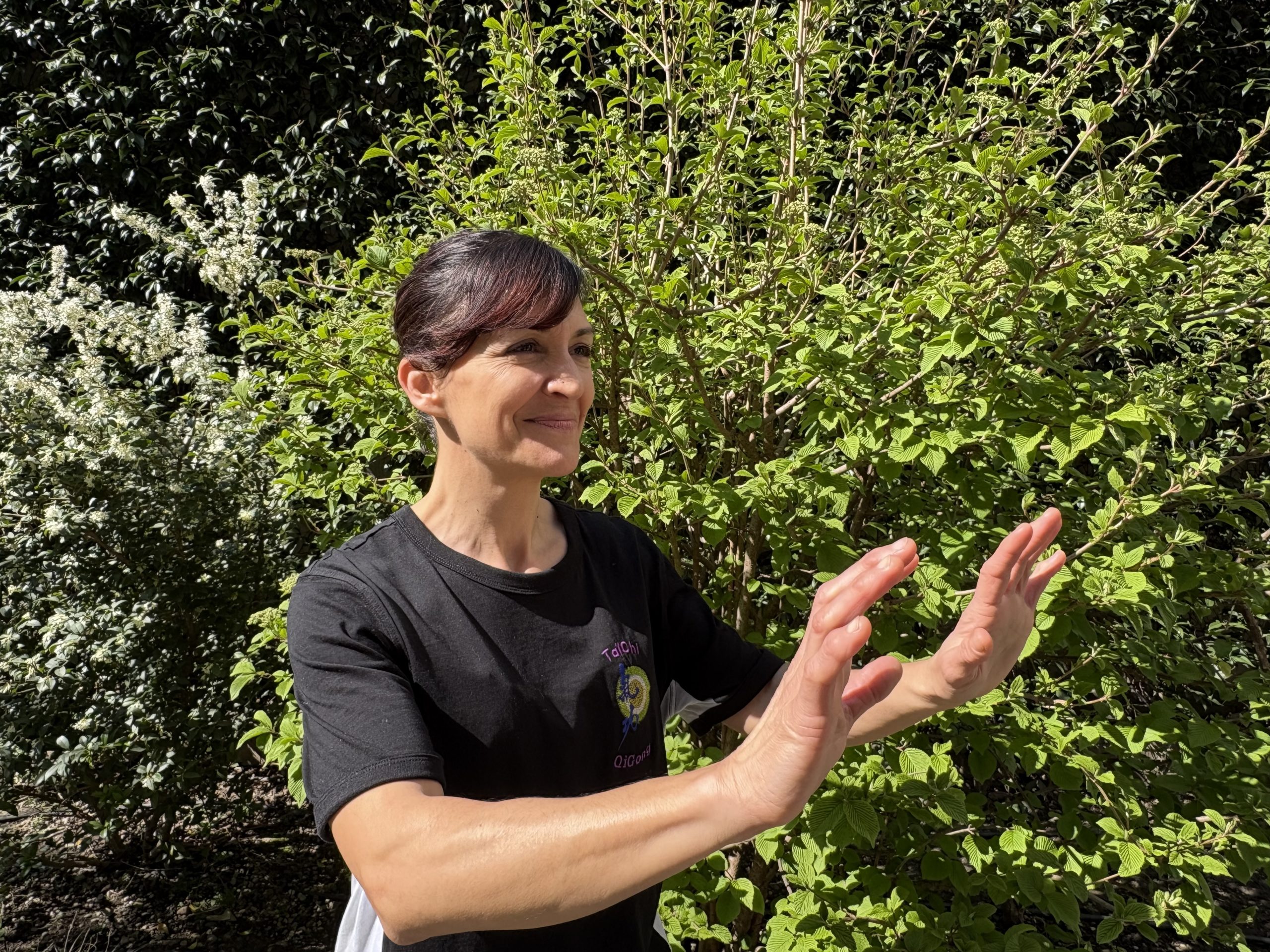Le Qi gong, dont Qi peut être traduit par énergie, souffle vital et gong par exercice, travail, propose différentes techniques de respiration, d’étirement et de renforcement. Des exercices de sensibilisation et visualisation et des postures d’enracinement permettant de développer une écoute intérieure.